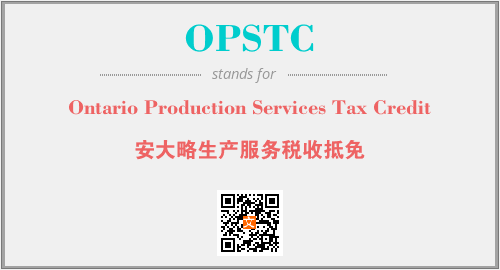上述内容是“Ontario Production Services Tax Credit”作为“OPSTC”的缩写,解释为“安大略生产服务税收抵免”时的信息,以及英文缩略词OPSTC所代表的英文单词,其对应的中文拼音、详细解释以及在英文中的流行度和相关分类、应用领域及应用示例等。