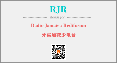 英文缩略词“RJR”经常作为“Radio Jamaica Redifusion”的英文缩写来使用,中文表示:“牙买加减少电台”。本文将详细介绍英文缩写词RJR所代表英文单词,其对应的中文拼音、详细解释以及在英语中的流行度。此外,还有关于缩略词RJR的分类、应用领域及相关应用示例等。