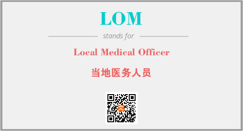 以上为Local Medical Officer英文缩略词LOM的中文解释,以及该英文缩写在英语的流行度、分类和应用领域方面的信息。