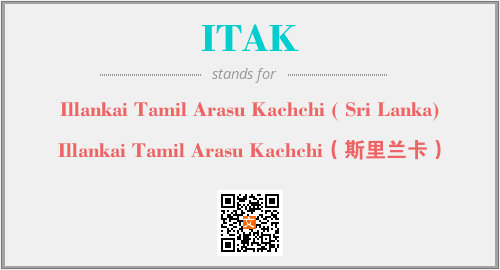 英文缩略词“ITAK”经常作为“Illankai Tamil Arasu Kachchi ( Sri Lanka)”的英文缩写来使用,中文表示:“Illankai Tamil Arasu Kachchi(斯里兰卡)”。本文将详细介绍英文缩写词ITAK所代表英文单词,其对应的中文拼音、详细解释以及在英语中的流行度。此外,还有关于缩略词ITAK的分类、应用领域及相关应用示例等。