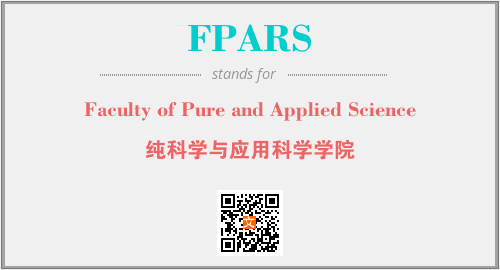 上述内容是“Faculty of Pure and Applied Science”作为“FPARS”的缩写,解释为“纯科学与应用科学学院”时的信息,以及英文缩略词FPARS所代表的英文单词,其对应的中文拼音、详细解释以及在英文中的流行度和相关分类、应用领域及应用示例等。