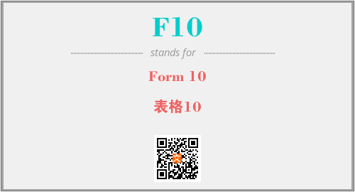 英文缩略词“F10”经常作为“Form 10”的英文缩写来使用,中文表示:“表格10”。本文将详细介绍英文缩写词F10所代表英文单词,其对应的中文拼音、详细解释以及在英语中的流行度。此外,还有关于缩略词F10的分类、应用领域及相关应用示例等。