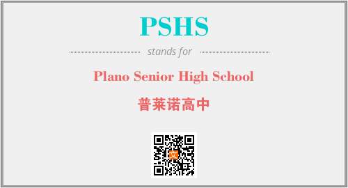 英文缩略词“PSHS”经常作为“Plano Senior High School”的英文缩写来使用,中文表示:“普莱诺高中”。本文将详细介绍英文缩写词PSHS所代表英文单词,其对应的中文拼音、详细解释以及在英语中的流行度。此外,还有关于缩略词PSHS的分类、应用领域及相关应用示例等。