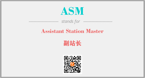英文缩略词“ASM”经常作为“Assistant Station Master”的英文缩写来使用,中文表示:“副站长”。本文将详细介绍英文缩写词ASM所代表英文单词,其对应的中文拼音、详细解释以及在英语中的流行度。此外,还有关于缩略词ASM的分类、应用领域及相关应用示例等。