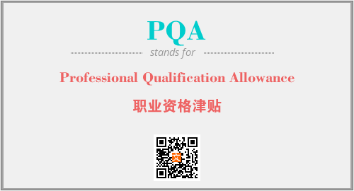 上述内容是“Professional Qualification Allowance”作为“PQA”的缩写,解释为“职业资格津贴”时的信息,以及英文缩略词PQA所代表的英文单词,其对应的中文拼音、详细解释以及在英文中的流行度和相关分类、应用领域及应用示例等。