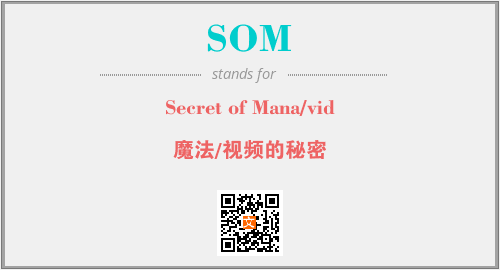 英文缩略词“SOM”经常作为“Secret of Mana/vid”的英文缩写来使用,中文表示:“魔法/视频的秘密”。本文将详细介绍英文缩写词SOM所代表英文单词,其对应的中文拼音、详细解释以及在英语中的流行度。此外,还有关于缩略词SOM的分类、应用领域及相关应用示例等。