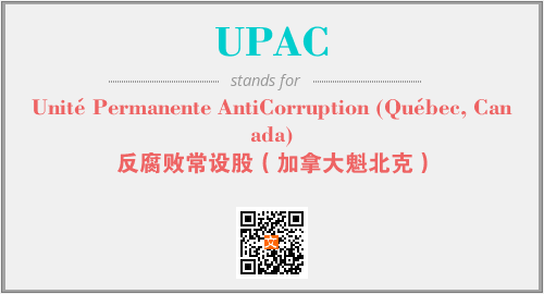 上述内容是“Unité Permanente AntiCorruption (Québec, Canada)”作为“UPAC”的缩写,解释为“反腐败常设股(加拿大魁北克)”时的信息,以及英文缩略词UPAC所代表的英文单词,其对应的中文拼音、详细解释以及在英文中的流行度和相关分类、应用领域及应用示例等。