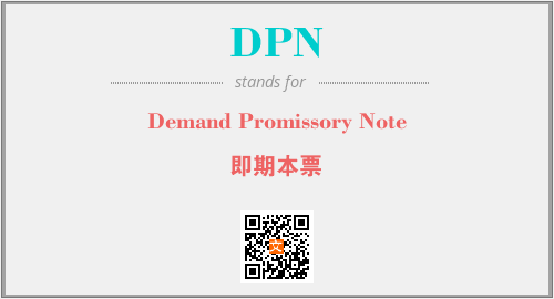 上述内容是“Demand Promissory Note”作为“DPN”的缩写,解释为“即期本票”时的信息,以及英文缩略词DPN所代表的英文单词,其对应的中文拼音、详细解释以及在英文中的流行度和相关分类、应用领域及应用示例等。