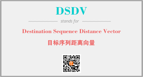 英文缩略词“DSDV”经常作为“Destination Sequence Distance Vector”的英文缩写来使用,中文表示:“目标序列距离向量”。本文将详细介绍英文缩写词DSDV所代表英文单词,其对应的中文拼音、详细解释以及在英语中的流行度。此外,还有关于缩略词DSDV的分类、应用领域及相关应用示例等。