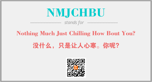 以上为Nothing Much Just Chilling How Bout You?英文缩略词NMJCHBU的中文解释,以及该英文缩写在英语的流行度、分类和应用领域方面的信息。