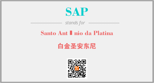 英文缩略词“SAP”经常作为“Santo Antônio da Platina”的英文缩写来使用,中文表示:“白金圣安东尼”。本文将详细介绍英文缩写词SAP所代表英文单词,其对应的中文拼音、详细解释以及在英语中的流行度。此外,还有关于缩略词SAP的分类、应用领域及相关应用示例等。