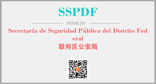 以上为Secretaría de Seguridad Pública del Distrito Federal英文缩略词SSPDF的中文解释,以及该英文缩写在英语的流行度、分类和应用领域方面的信息。