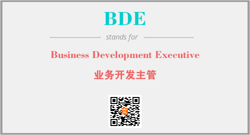 上述内容是“Business Development Executive”作为“BDE”的缩写,解释为“业务开发主管”时的信息,以及英文缩略词BDE所代表的英文单词,其对应的中文拼音、详细解释以及在英文中的流行度和相关分类、应用领域及应用示例等。
