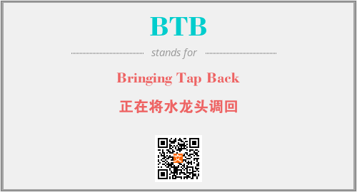上述内容是“Bringing Tap Back”作为“BTB”的缩写,解释为“正在将水龙头调回”时的信息,以及英文缩略词BTB所代表的英文单词,其对应的中文拼音、详细解释以及在英文中的流行度和相关分类、应用领域及应用示例等。