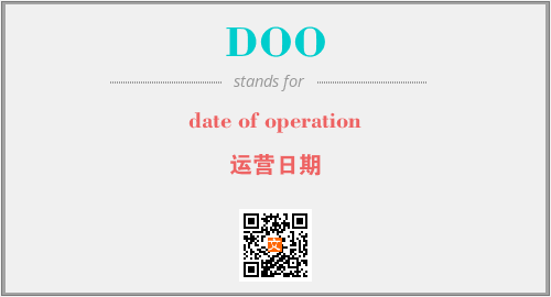 英文缩略词“DOO”经常作为“date of operation”的英文缩写来使用,中文表示:“运营日期”。本文将详细介绍英文缩写词DOO所代表英文单词,其对应的中文拼音、详细解释以及在英语中的流行度。此外,还有关于缩略词DOO的分类、应用领域及相关应用示例等。