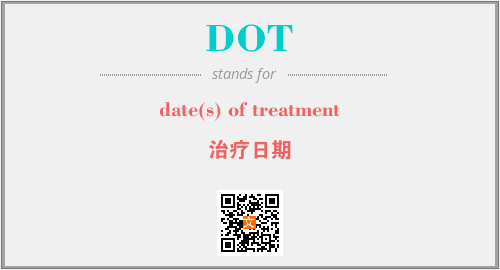 上述内容是“date(s) of treatment”作为“DOT”的缩写,解释为“治疗日期”时的信息,以及英文缩略词DOT所代表的英文单词,其对应的中文拼音、详细解释以及在英文中的流行度和相关分类、应用领域及应用示例等。