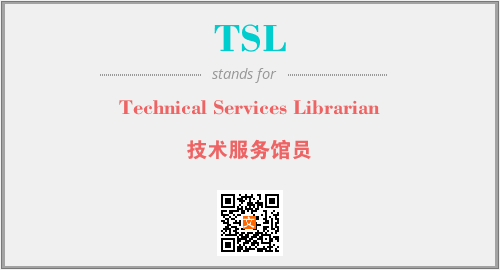 上述内容是“Technical Services Librarian”作为“TSL”的缩写,解释为“技术服务馆员”时的信息,以及英文缩略词TSL所代表的英文单词,其对应的中文拼音、详细解释以及在英文中的流行度和相关分类、应用领域及应用示例等。