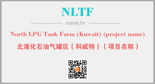 上述内容是“North LPG Tank Farm (Kuwait) (project name)”作为“NLTF”的缩写,解释为“北液化石油气罐区(科威特)(项目名称)”时的信息,以及英文缩略词NLTF所代表的英文单词,其对应的中文拼音、详细解释以及在英文中的流行度和相关分类、应用领域及应用示例等。