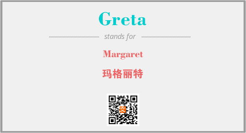 上述内容是“Margaret”作为“Greta”的缩写,解释为“玛格丽特”时的信息,以及英文缩略词Greta所代表的英文单词,其对应的中文拼音、详细解释以及在英文中的流行度和相关分类、应用领域及应用示例等。