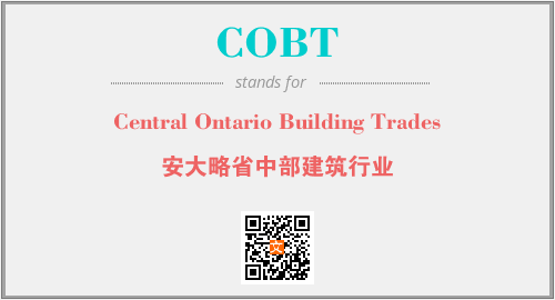 上述内容是“Central Ontario Building Trades”作为“COBT”的缩写,解释为“安大略省中部建筑行业”时的信息,以及英文缩略词COBT所代表的英文单词,其对应的中文拼音、详细解释以及在英文中的流行度和相关分类、应用领域及应用示例等。