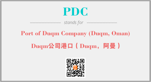 英文缩略词“PDC”经常作为“Port of Duqm Company (Duqm, Oman)”的英文缩写来使用,中文表示:“Duqm公司港口(Duqm,阿曼)”。本文将详细介绍英文缩写词PDC所代表英文单词,其对应的中文拼音、详细解释以及在英语中的流行度。此外,还有关于缩略词PDC的分类、应用领域及相关应用示例等。