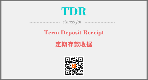 上述内容是“Term Deposit Receipt”作为“TDR”的缩写,解释为“定期存款收据”时的信息,以及英文缩略词TDR所代表的英文单词,其对应的中文拼音、详细解释以及在英文中的流行度和相关分类、应用领域及应用示例等。