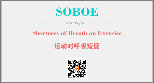 上述内容是“Shortness of Breath on Exercise”作为“SOBOE”的缩写,解释为“运动时呼吸短促”时的信息,以及英文缩略词SOBOE所代表的英文单词,其对应的中文拼音、详细解释以及在英文中的流行度和相关分类、应用领域及应用示例等。