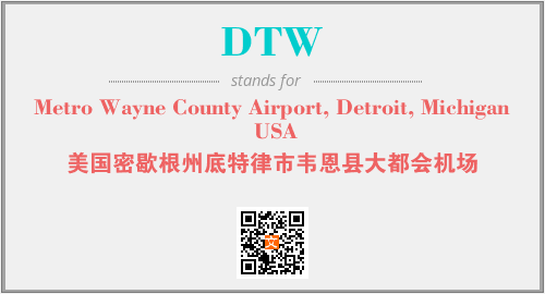 英文缩略词“DTW”经常作为“Metro Wayne County Airport, Detroit, Michigan USA”的英文缩写来使用,中文表示:“美国密歇根州底特律市韦恩县大都会机场”。本文将详细介绍英文缩写词DTW所代表英文单词,其对应的中文拼音、详细解释以及在英语中的流行度。此外,还有关于缩略词DTW的分类、应用领域及相关应用示例等。