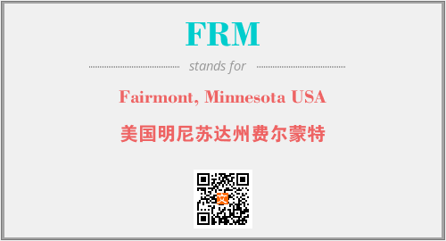 上述内容是“Fairmont, Minnesota USA”作为“FRM”的缩写,解释为“美国明尼苏达州费尔蒙特”时的信息,以及英文缩略词FRM所代表的英文单词,其对应的中文拼音、详细解释以及在英文中的流行度和相关分类、应用领域及应用示例等。