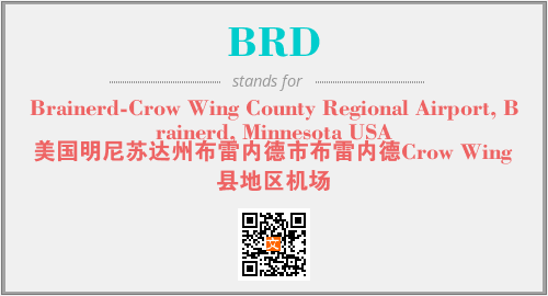 英文缩略词“BRD”经常作为“Brainerd-Crow Wing County Regional Airport, Brainerd, Minnesota USA”的英文缩写来使用,中文表示:“美国明尼苏达州布雷内德市布雷内德Crow Wing县地区机场”。本文将详细介绍英文缩写词BRD所代表英文单词,其对应的中文拼音、详细解释以及在英语中的流行度。此外,还有关于缩略词BRD的分类、应用领域及相关应用示例等。