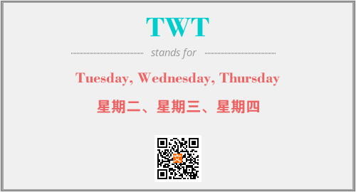 以上为Tuesday, Wednesday, Thursday英文缩略词TWT的中文解释,以及该英文缩写在英语的流行度、分类和应用领域方面的信息。