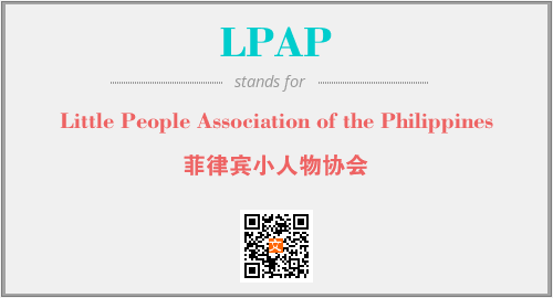 上述内容是“Little People Association of the Philippines”作为“LPAP”的缩写,解释为“菲律宾小人物协会”时的信息,以及英文缩略词LPAP所代表的英文单词,其对应的中文拼音、详细解释以及在英文中的流行度和相关分类、应用领域及应用示例等。