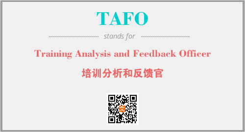 英文缩略词“TAFO”经常作为“Training Analysis and Feedback Officer”的英文缩写来使用,中文表示:“培训分析和反馈官”。本文将详细介绍英文缩写词TAFO所代表英文单词,其对应的中文拼音、详细解释以及在英语中的流行度。此外,还有关于缩略词TAFO的分类、应用领域及相关应用示例等。