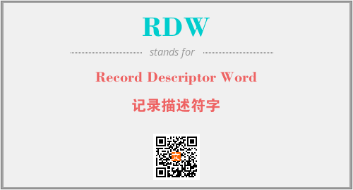英文缩略词“RDW”经常作为“Record Descriptor Word”的英文缩写来使用,中文表示:“记录描述符字”。本文将详细介绍英文缩写词RDW所代表英文单词,其对应的中文拼音、详细解释以及在英语中的流行度。此外,还有关于缩略词RDW的分类、应用领域及相关应用示例等。