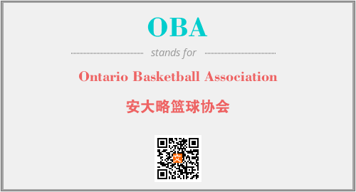 上述内容是“Ontario Basketball Association”作为“OBA”的缩写,解释为“安大略篮球协会”时的信息,以及英文缩略词OBA所代表的英文单词,其对应的中文拼音、详细解释以及在英文中的流行度和相关分类、应用领域及应用示例等。