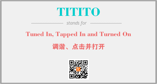 上述内容是“Tuned In, Tapped In and Turned On”作为“TITITO”的缩写,解释为“调谐、点击并打开”时的信息,以及英文缩略词TITITO所代表的英文单词,其对应的中文拼音、详细解释以及在英文中的流行度和相关分类、应用领域及应用示例等。