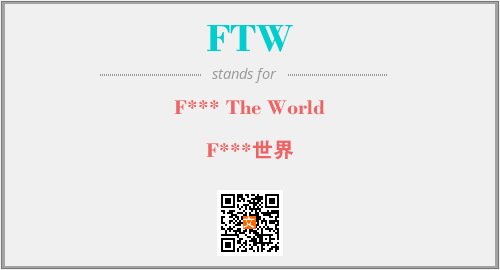 英文缩略词“FTW”经常作为“F*** The World”的英文缩写来使用,中文表示:“F***世界”。本文将详细介绍英文缩写词FTW所代表英文单词,其对应的中文拼音、详细解释以及在英语中的流行度。此外,还有关于缩略词FTW的分类、应用领域及相关应用示例等。