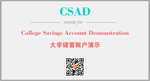 英文缩略词“CSAD”经常作为“College Savings Account Demonstration”的英文缩写来使用,中文表示:“大学储蓄账户演示”。本文将详细介绍英文缩写词CSAD所代表英文单词,其对应的中文拼音、详细解释以及在英语中的流行度。此外,还有关于缩略词CSAD的分类、应用领域及相关应用示例等。