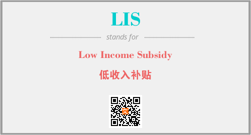 英文缩略词“LIS”经常作为“Low Income Subsidy”的英文缩写来使用,中文表示:“低收入补贴”。本文将详细介绍英文缩写词LIS所代表英文单词,其对应的中文拼音、详细解释以及在英语中的流行度。此外,还有关于缩略词LIS的分类、应用领域及相关应用示例等。