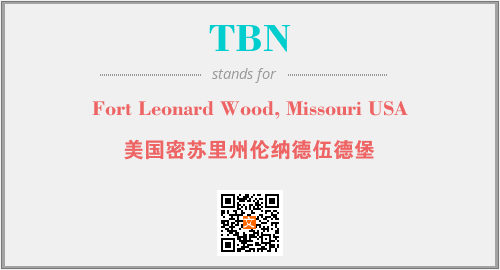 上述内容是“Fort Leonard Wood, Missouri USA”作为“TBN”的缩写,解释为“美国密苏里州伦纳德伍德堡”时的信息,以及英文缩略词TBN所代表的英文单词,其对应的中文拼音、详细解释以及在英文中的流行度和相关分类、应用领域及应用示例等。