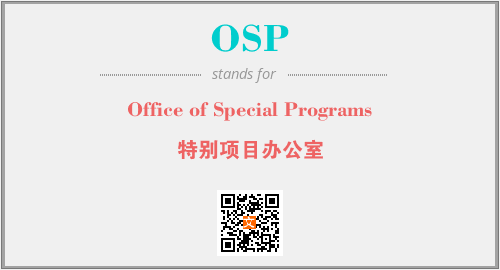 英文缩略词“OSP”经常作为“Office of Special Programs”的英文缩写来使用,中文表示:“特别项目办公室”。本文将详细介绍英文缩写词OSP所代表英文单词,其对应的中文拼音、详细解释以及在英语中的流行度。此外,还有关于缩略词OSP的分类、应用领域及相关应用示例等。