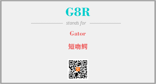 上述内容是“Gator”作为“G8R”的缩写,解释为“短吻鳄”时的信息,以及英文缩略词G8R所代表的英文单词,其对应的中文拼音、详细解释以及在英文中的流行度和相关分类、应用领域及应用示例等。