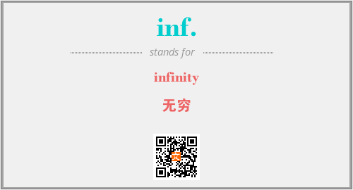 上述内容是“infinity”作为“inf.”的缩写,解释为“无穷”时的信息,以及英文缩略词inf.所代表的英文单词,其对应的中文拼音、详细解释以及在英文中的流行度和相关分类、应用领域及应用示例等。