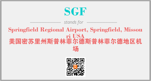 上述内容是“Springfield Regional Airport, Springfield, Missouri USA”作为“SGF”的缩写,解释为“美国密苏里州斯普林菲尔德斯普林菲尔德地区机场”时的信息,以及英文缩略词SGF所代表的英文单词,其对应的中文拼音、详细解释以及在英文中的流行度和相关分类、应用领域及应用示例等。