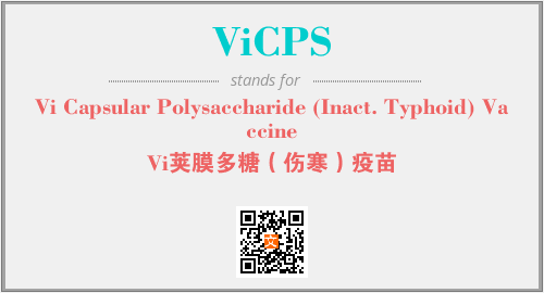 上述内容是“Vi Capsular Polysaccharide (Inact. Typhoid) Vaccine”作为“ViCPS”的缩写,解释为“Vi荚膜多糖(伤寒)疫苗”时的信息,以及英文缩略词ViCPS所代表的英文单词,其对应的中文拼音、详细解释以及在英文中的流行度和相关分类、应用领域及应用示例等。