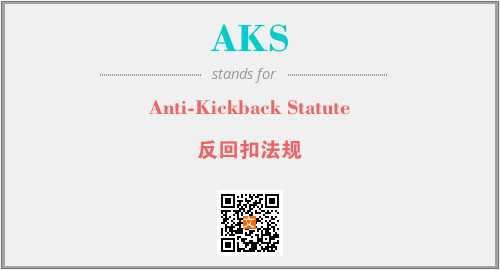 上述内容是“Anti-Kickback Statute”作为“AKS”的缩写,解释为“反回扣法规”时的信息,以及英文缩略词AKS所代表的英文单词,其对应的中文拼音、详细解释以及在英文中的流行度和相关分类、应用领域及应用示例等。