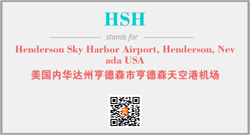 上述内容是“Henderson Sky Harbor Airport, Henderson, Nevada USA”作为“HSH”的缩写,解释为“美国内华达州亨德森市亨德森天空港机场”时的信息,以及英文缩略词HSH所代表的英文单词,其对应的中文拼音、详细解释以及在英文中的流行度和相关分类、应用领域及应用示例等。