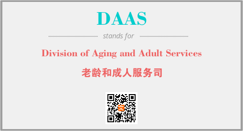 英文缩略词“DAAS”经常作为“Division of Aging and Adult Services”的英文缩写来使用,中文表示:“老龄和成人服务司”。本文将详细介绍英文缩写词DAAS所代表英文单词,其对应的中文拼音、详细解释以及在英语中的流行度。此外,还有关于缩略词DAAS的分类、应用领域及相关应用示例等。