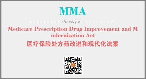 上述内容是“Medicare Prescription Drug Improvement and Modernization Act”作为“MMA”的缩写,解释为“医疗保险处方药改进和现代化法案”时的信息,以及英文缩略词MMA所代表的英文单词,其对应的中文拼音、详细解释以及在英文中的流行度和相关分类、应用领域及应用示例等。