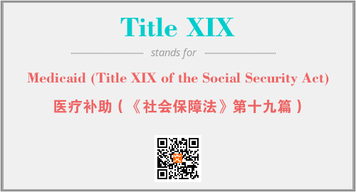 英文缩略词“Title XIX”经常作为“Medicaid (Title XIX of the Social Security Act)”的英文缩写来使用,中文表示:“医疗补助(《社会保障法》第十九篇)”。本文将详细介绍英文缩写词Title XIX所代表英文单词,其对应的中文拼音、详细解释以及在英语中的流行度。此外,还有关于缩略词Title XIX的分类、应用领域及相关应用示例等。
